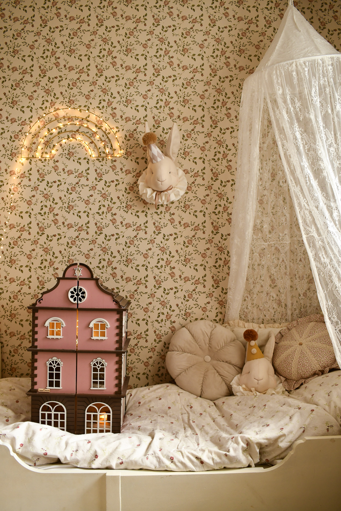 Przepiękny delikatny, dziewczęcy Baldachim z miękkiej koronki z nutką stylu retro. To nie tylko dekoracja ale zaczarowane miejsce zabawy i odpoczynku. Stwórz przytulny kącik snu, namiot pełen dziecięcych sekretów lub ochronną moskitierę na lato. Idealny do pokoju dziecka funkcjonalny i magiczny.