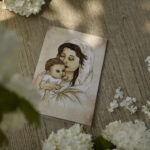Prześliczna Maryja z Dzieciątkiem w stylu retro idealna na Chrzest, Komunię czy inne okazje. Z pewnością będzie to przepiękna pamiątka na całe życie. Pomieści wiele ciepłych słów prosto z serca. Dawanie kartek do prezentu to przepiękna tradycja nie pozwólmy by zniknęła. Kartkę zdobi cudowna bardzo sztywna, masywna koperta wykonana ręcznie, która dodaje niesamowitego uroku i charakteru kartce.