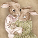 Rozczulająca ilustracja rodzinki Królików z dzieckiem na rękach który pierwotnie został ręcznie namalowany z wielką pasją, z pewnością odmieni wnętrze i wprowadzi trochę magii. Obrazki pobudzają dziecięcą wyobraźnię i wrażliwość na barwy, zadbaj od najmłodszych lat o doskonalenie tych cech i otaczaj ich pięknem.